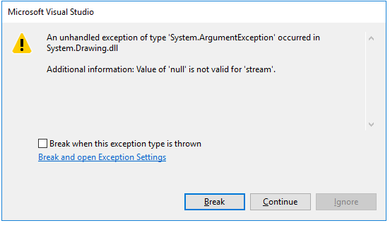 You might have add new image file in resource.resx file of your visual studio projects, and the file property Build Action is “Content”